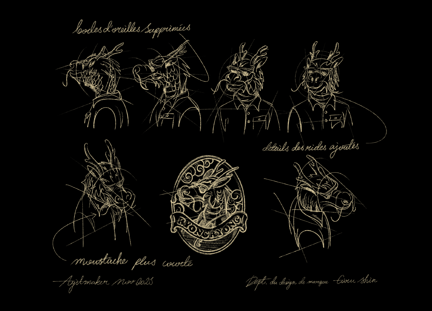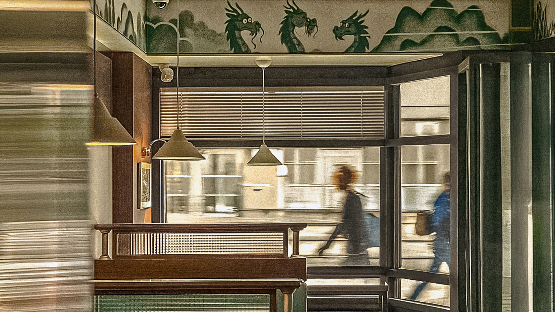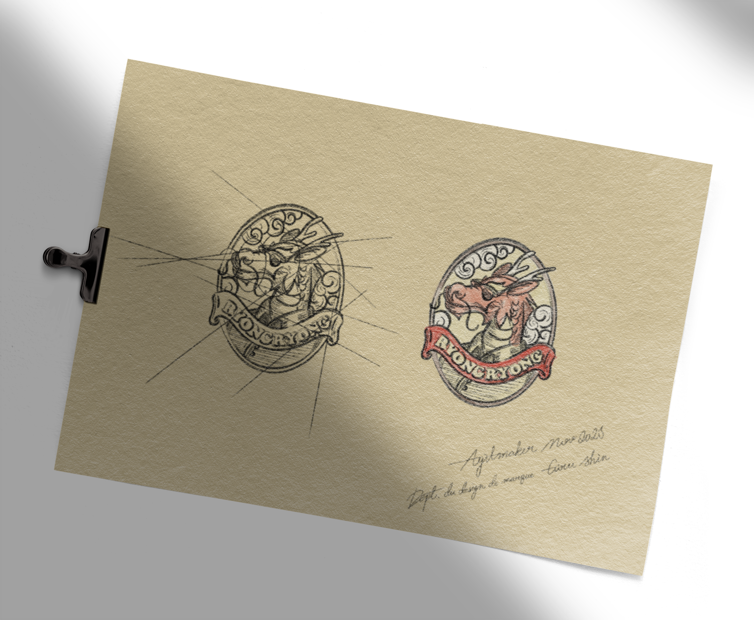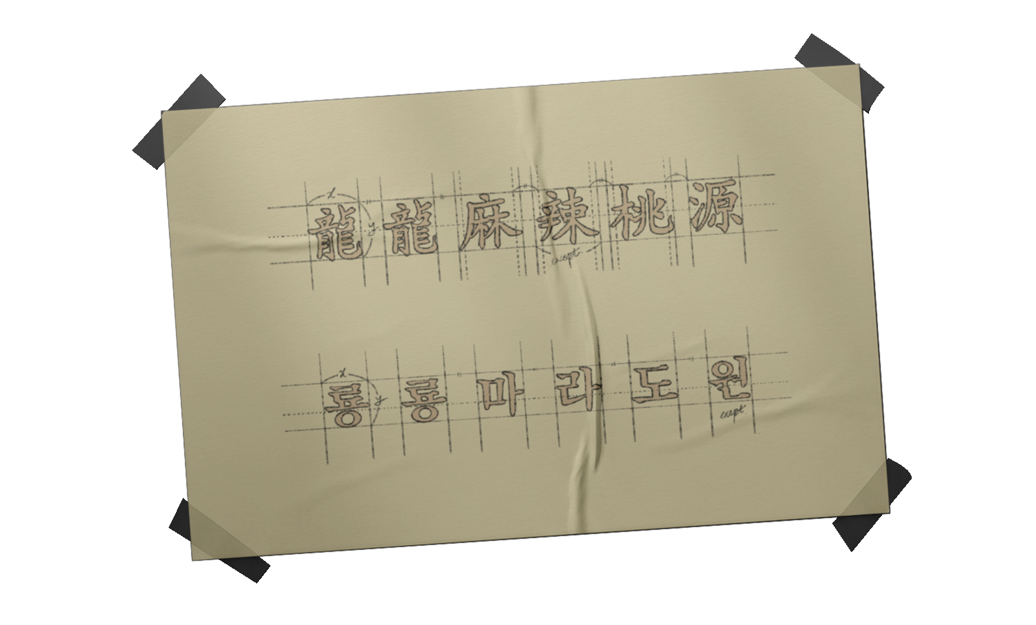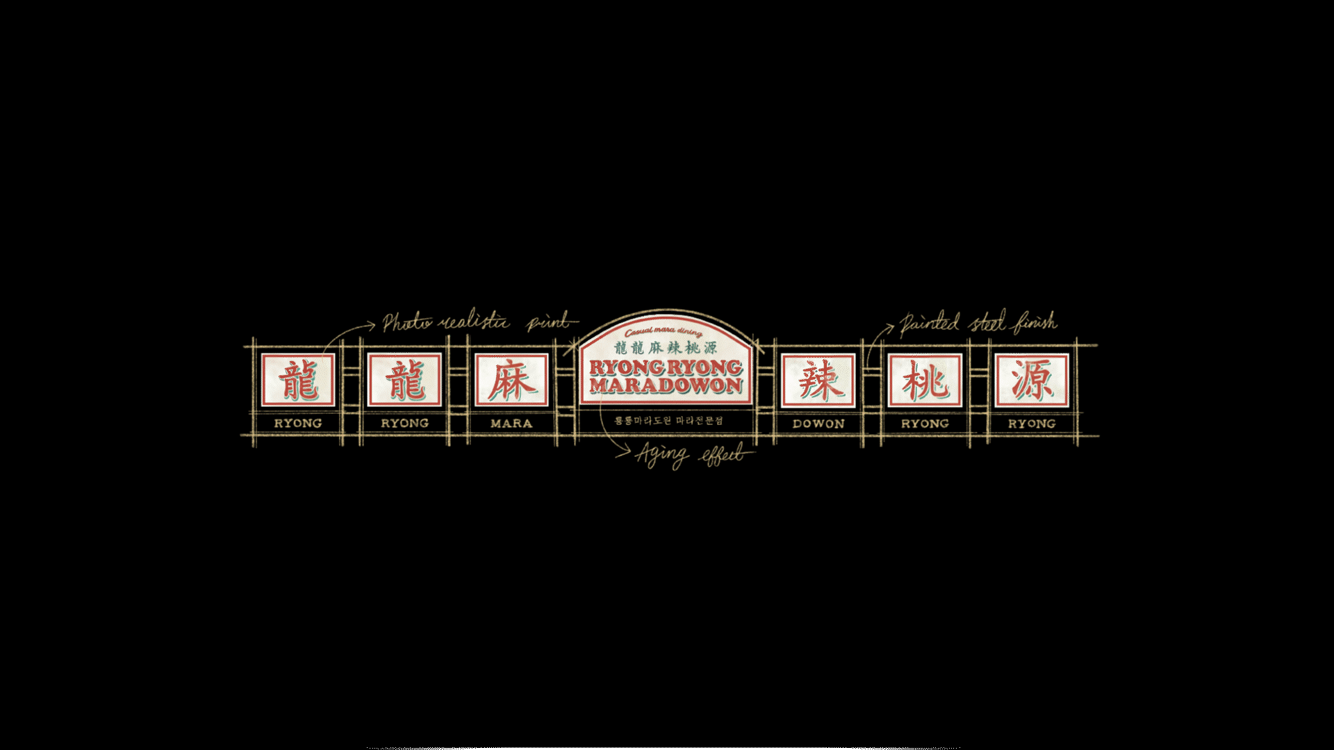 3) 파노라마 벽화 공간 상단을 감싸는 360도 파노라마 벽화는 천장을 따라 배치되어, 시선을 유도하며 스토리라인을 따라 자연스럽게 공간을 탐색하게 만듭니다. 혼돈과 어둠 속에서 천지개벽이 일어나고, 그 틈에서 세 마리의 용, 용용이 삼형제가 탄생합니다. 이들은 집안 대대로 전해 내려오던 신비로운 마라 레시피를 이어받습니다. 시간이 흐르고, 세계는 산업화의 물결에 휩싸입니다. 장남 화룡은 홍콩을 떠나 타지에서 전통의 맛을 현대적으로 재해석한 마라탕을 개발하고, 차남 주룡은 고대의 향신술과 술법을 연구하여 자신만의 고량주 칵테일을 탄생시킵니다. 막내 마룡은 자신만의 레스토랑을 설계하고, 그 안에서 수많은 이들과 진한 유대를 맺어갑니다.